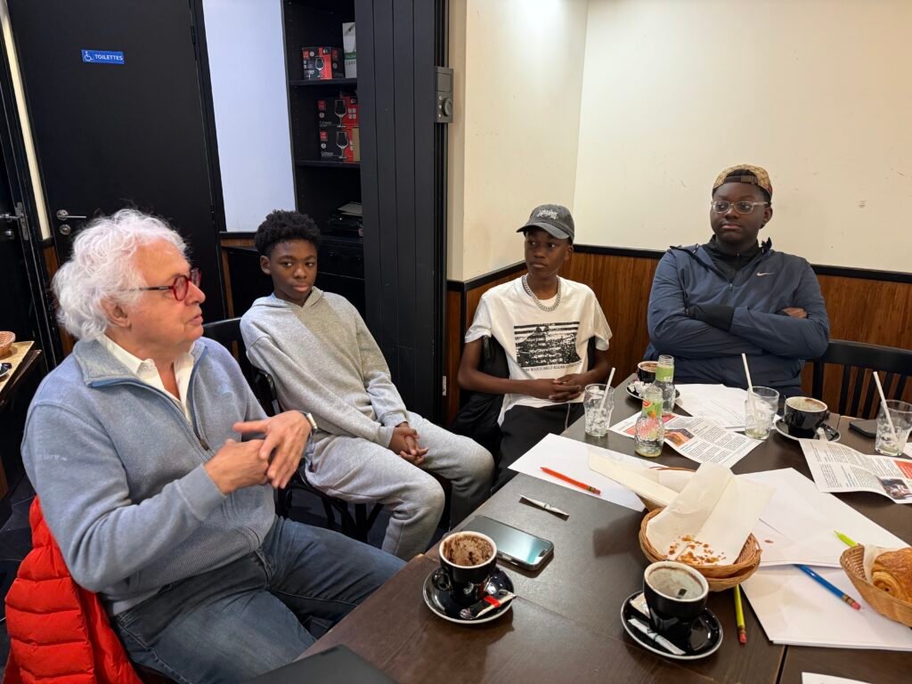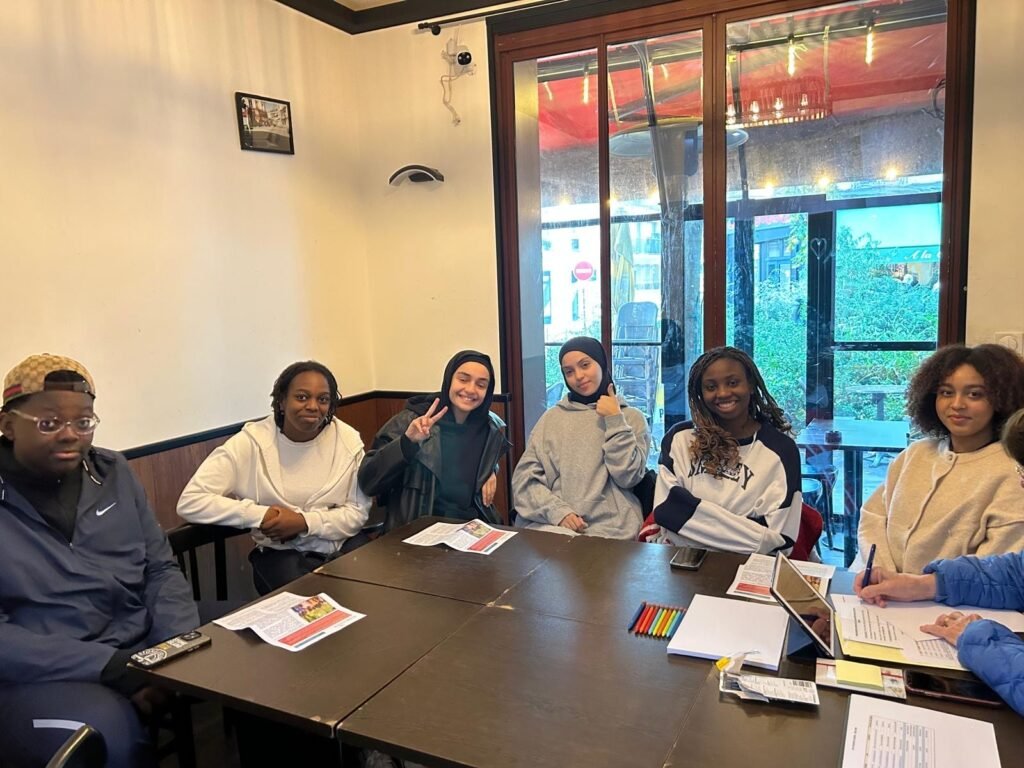 Ce samedi 25 octobre, notre habituel café du 20ᵉ arrondissement a été animé par la curiosité, l’énergie et l’enthousiasme de nos lycéens & étudiants. Nouha, Douae, Mathis, Assitan et les autres ont rempli l’espace de leurs réflexions, de leurs questions et de leur envie de s’engager pleinement dans cette nouvelle année à Double Horizon. Huit jeunes sur neuf étaient présents, chacun arrivé avec ses notes et ses exemples concrets, prêt à partager sa vision.
