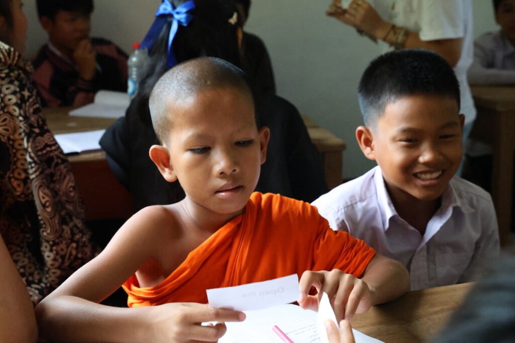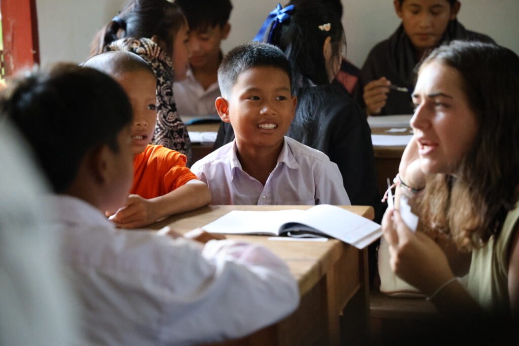 Nous y proposons des cours d’Anglais quotidien pour les secondaires en périscolaires (après les cours officiels). 2 professeurs Laotiens ont été recrutés.